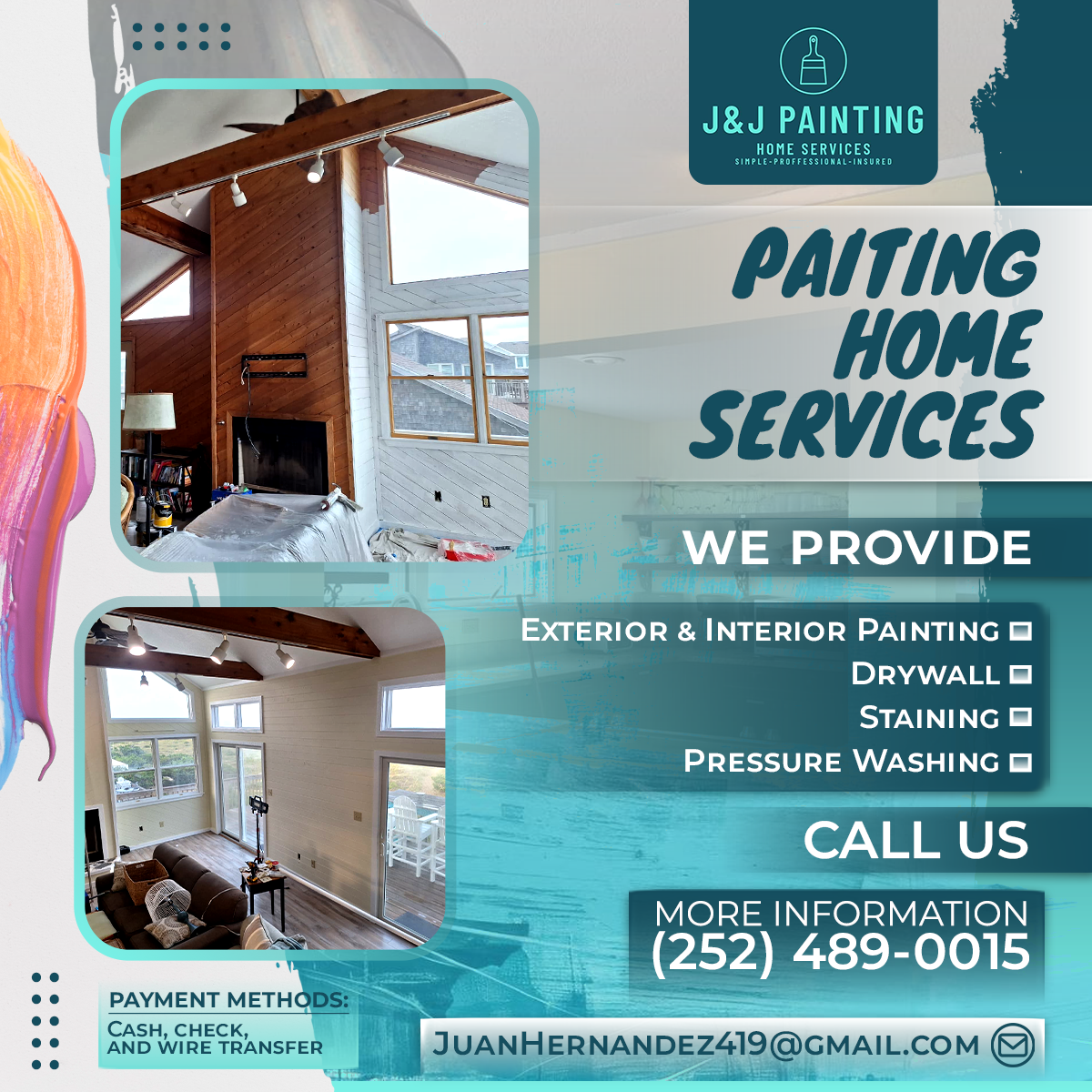 At J & J PAINTING HOME SERVICES, we understand that every space tells its own story. That's why we offer professional interior and exterior painting services in North Carolina, with a focus on detail, elegance, and durability.